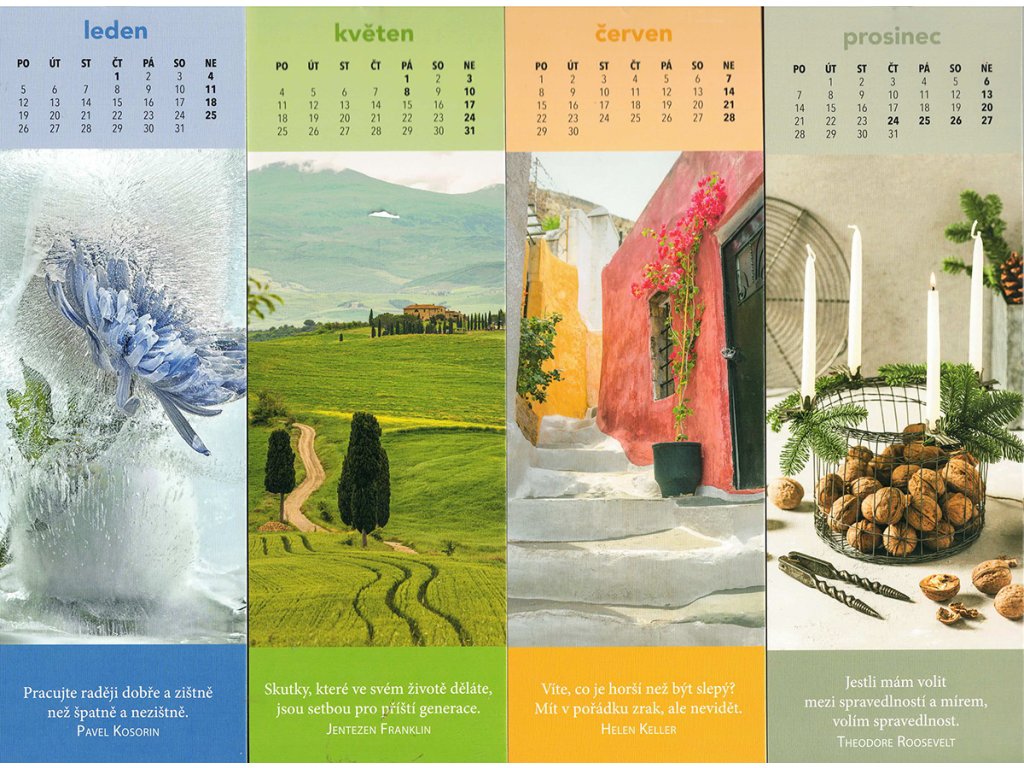 Kalendář s inspirativním citátem na každý měsíc. Listy kalendáře mohou po odtržení posloužit jako záložka.