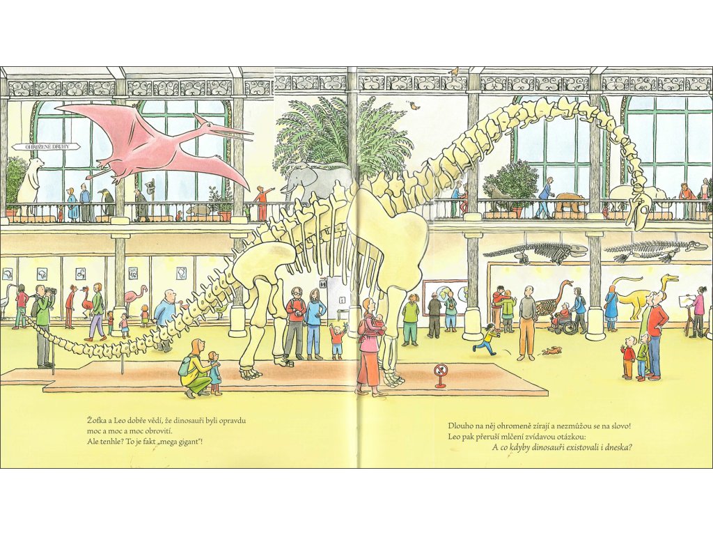 Sourozenci Žofka a Leo doma moc řádí, a tak je rodiče vezmou do muzea na dinosaury. Při pohledu na obludné kostry začnou děti fantazírovat: A co kdyby dinosauři žili i dneska, jaké by to asi bylo?...