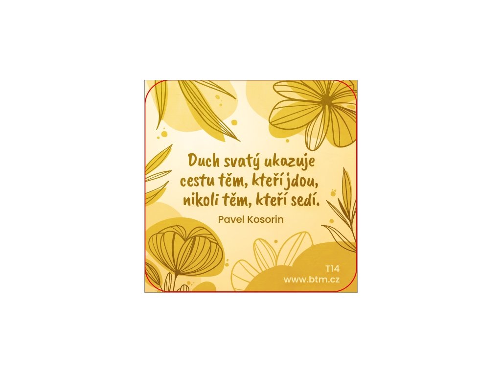Laminovaný podtácek s obrázkem a biblickým textem Přísloví 12,25. Velikost: 9 × 9 cm