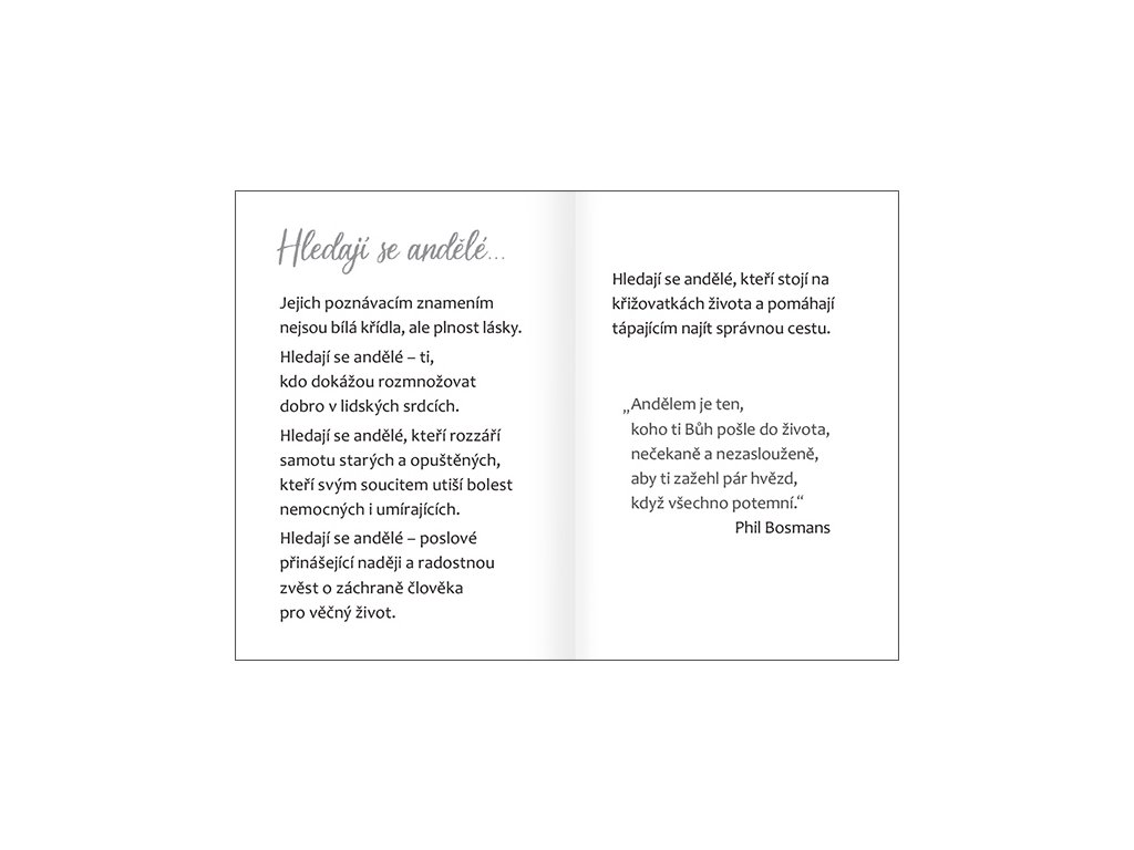 Hledají se andělé – poslové přinášející naději a radostnou zvěst o záchraně člověka pro věčný život.