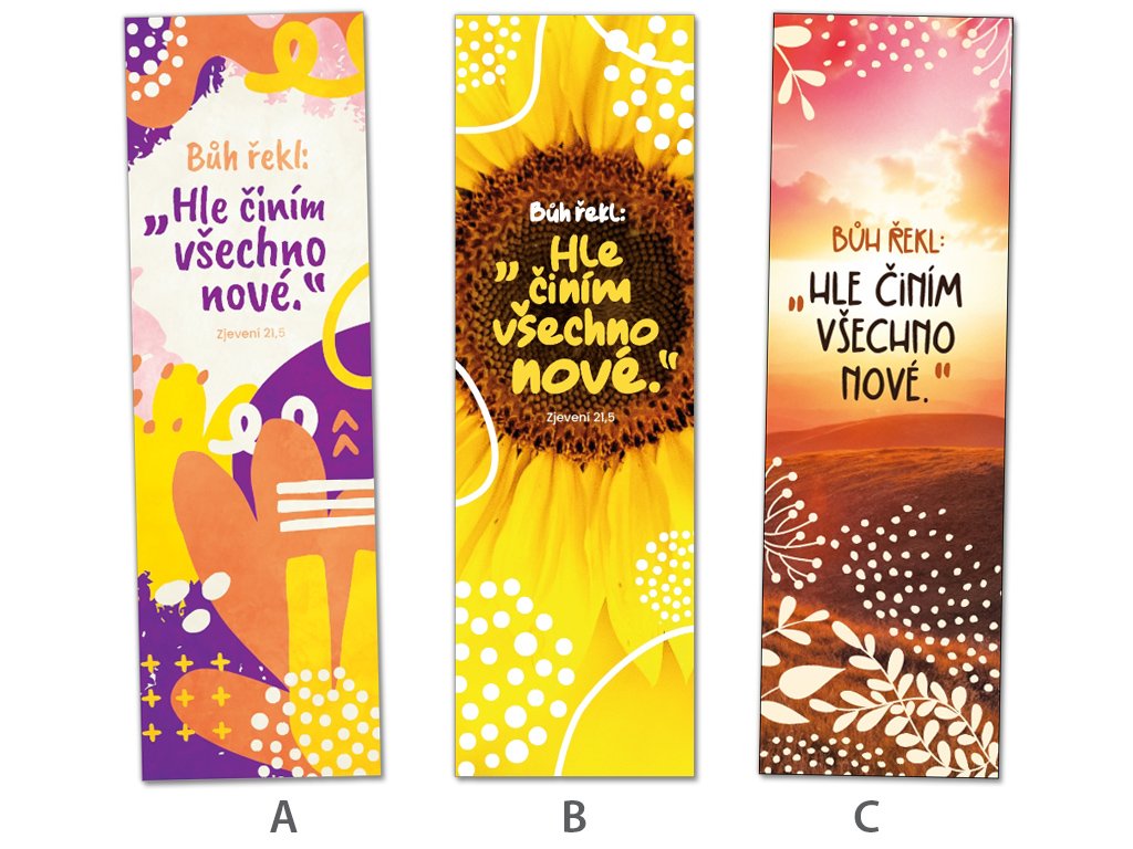 Samolepky biblických veršů, které je možné nalepit na zadní stranu záložek BTM.